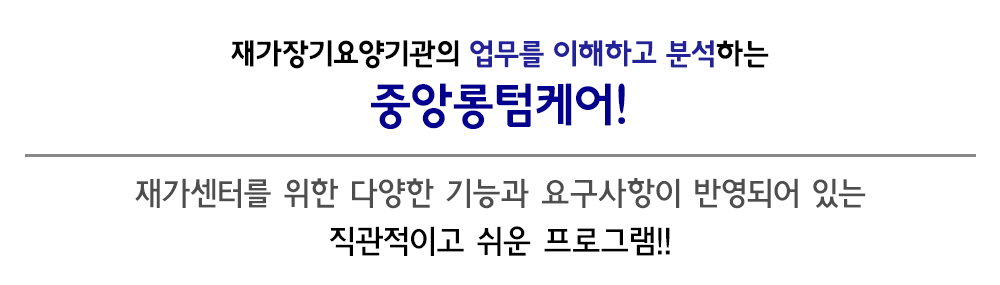 수년간 이용자의 소중한 의견을 수렴하며 자라온 중앙롱텀케어는 재가장기요양기관에 필요한 기능 및 요구사항 등이 대부분 반영되어 있어 재가업무 경험자라면 사용결정과 동시에 쉽고 빠르게 사용할 수 있습니다.